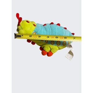 Adorable Heimlich a Bugs Life Plush Caterpillar Mini Bean Bag by Disney. Made with soft, plush fabric in vibrant green and blue colors. Perfect for cuddling or display.