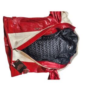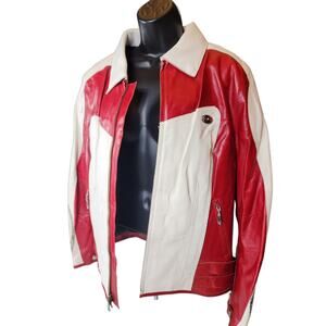 Hein Gericke Leather Motorcycle Jacket Womens Size 14 Red White Racing Quilted Lining Zip Pockets Retro Biker