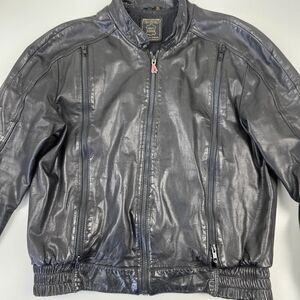Preloved black leather jacket in good condition with normal wear shown. See pictures for more details and measurements. Feel free to ask any questions.