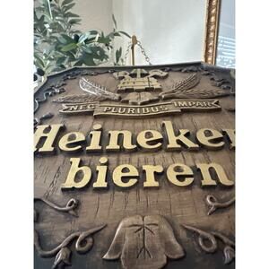 Heineken Bieren Wall Plaque Beer Sign "Nec Pluribus Impar" Faux Wood 12.5" x 11”