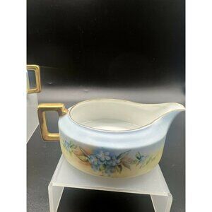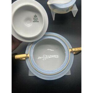 Heinrich & Co Selb Bavaria Creamer and Sugar Porcelain Blue Floral Gold 6075.