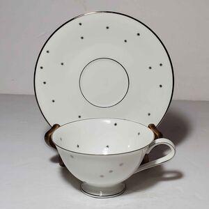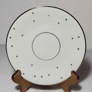 Vintage Heinrich teacup and saucer. Made in Selb Bavaria Germany. Atomic star pattern. Silver trim. Some trim loss on center of saucer. See all pictures.