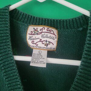 Heirloom Collectible Ugly Christmas Green Cardigan Sweater Holiday Womens L Larg