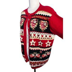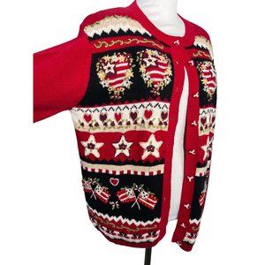 Heirloom Collectibles Cardigan Sweater Red Blue Patriotic Embroidered Vtg 90s