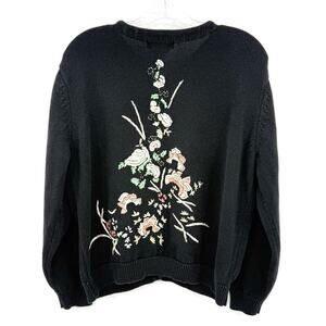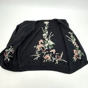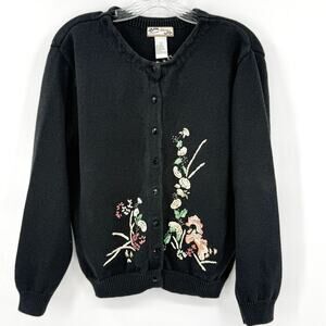Heirloom Collectibles VTG ‘03 Floral Embroidered Black Cardigan Women SZ Large
