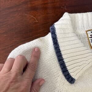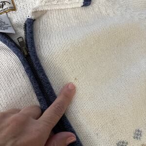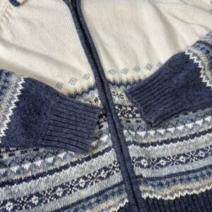 Heirloom Collectibles VTG Fair Isle Cardigan Sweater L Collar Zip Up Blue White