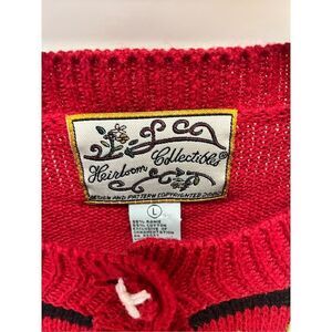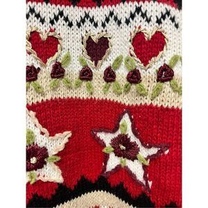 Heirloom Collectibles Vintage Red Floral Hearts Valentine Flag Cardigan Sweater
