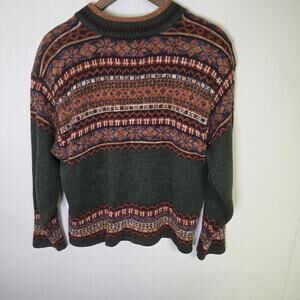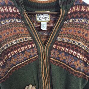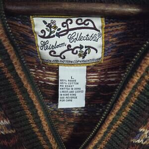 Heirloom Collectibles Women's Green Patterned Zip Up Sweater Size Large