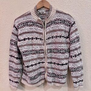 Heirloom Collectibles Zippered Cardigan Sz M-L Brown Tan Vintage Cottagecore