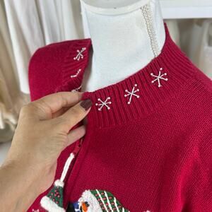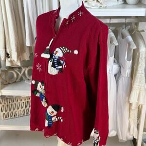 Heirloom Collectibles sz XL Snowman red full zip cardigan festive Christmas 4247
