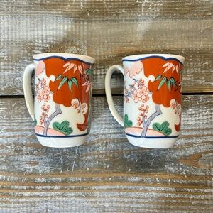 Heirloom Fine China Mug Set by Neumann Marcus with Asian Bamboo Design.