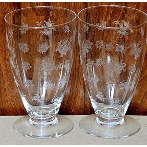 This set of Heisey Chintz etched ice tea or ice water glasses will add an elegant touch to any occasion. The etched floral, bird and butterfly all over chintz pattern was produced in Ohio between 1931 and 1942, and will make a stunning addition to any drinkware collection.