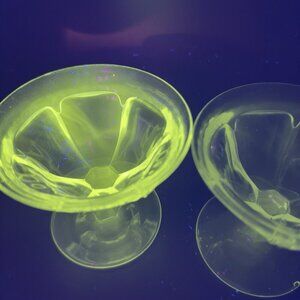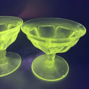 Heisey Colonial Clear Goblet Drinking Glass Cups Manganese 365nm Green UV Set2