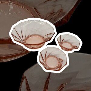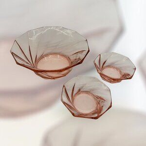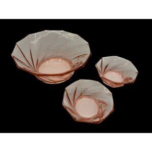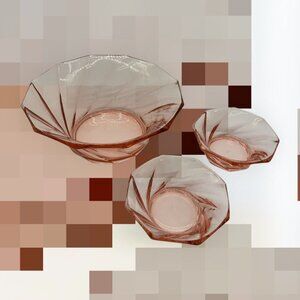 Heisey Pink Twist Depression Glass Serving Bowl 8" With Two 4.5" Smaller Bowls