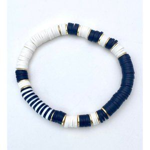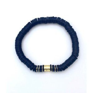 Navy and white heishi clay polymer beads with 18k gold accent beads. All three bracelets are included in this bundle.