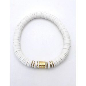 Heishi beads are environmentally friendly polymer clay and extremely resilient, lightweight, and retain their vibrant colors. Each handmade bracelet has 18K gold plated discs and drum anchor beads.