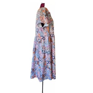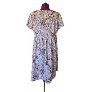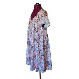 Hekka Floral V-Neck Midi Dress in Pink and Blue