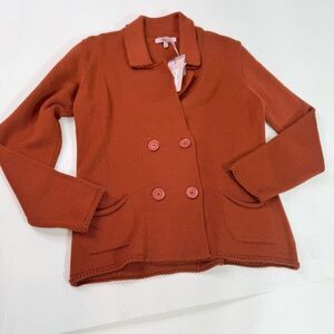 Hekla & Co Sweater Women Medium Cardigan Double Breasted Merino Wool Orange Knit