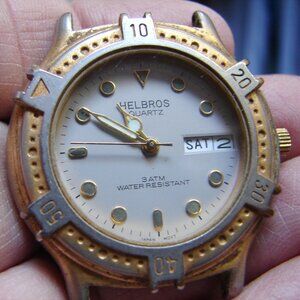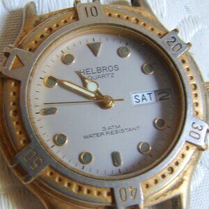 Nice mens quartz wristwatch by Helbros with day/date indicator.