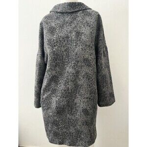 Helen Berman Gray Leopard Cheetah Wool Blend Long Button Front Pea Coat Size 12