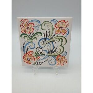 Helen Blanck Artist 6" Tile Trivet Floral Abstract Norwegian Bergquist Imports