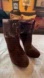Helen Heart Brown Suede & Sequin Ankle 4.5” High Heel Booties back Zip size 8