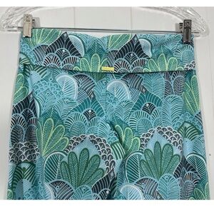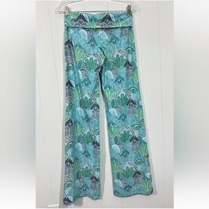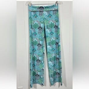 Helen Jon Pants Women's XS Green Foldover Beach Geometric Stretch Wide Leg USA