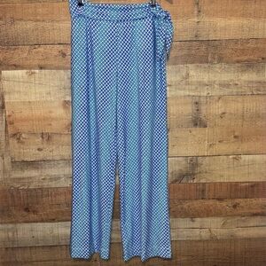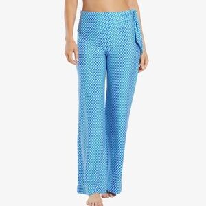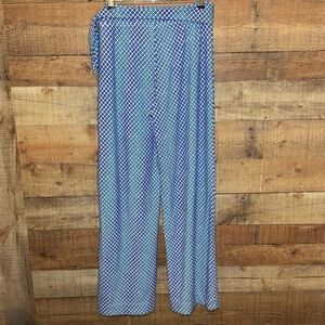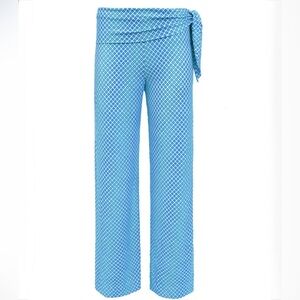 Helen Jon Relaxed Side-Tie Pant Upf 50+ in Ombre Geo print size Medium. Pre-loved great condition. Beach-chic comfort! These stretchy pants feature UPF 50+ fabric, billowy legs, and a pretty sash at the waist. The Ombre Geo print is a sporty, preppy, geometric print in dynamic shades of periwinkle blue and seafoam aqua. Perfect for every mood, this print will take you anywhere in style.