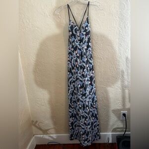 Helen Jon Rhapsody Gypsy Floral Maxi Dress Blue Gray Spaghetti Strap Size XS