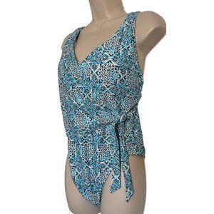 Helen Jon Wrap One Piece Size XL Montrose NWT Adjustable Blue White Print $194