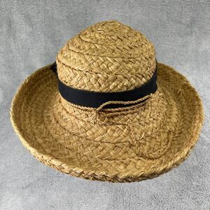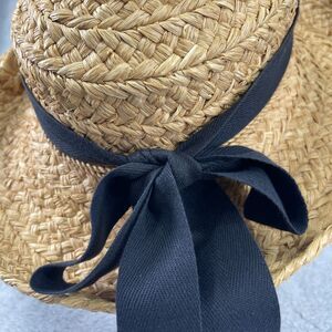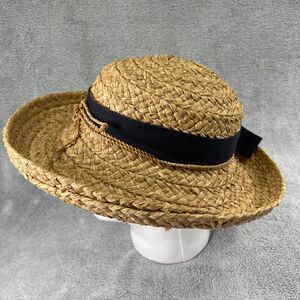 Helen Kaminski Classic 5 Womens OS Tan Raffia Straw Black Ribbon Bow Sun Hat