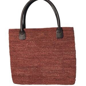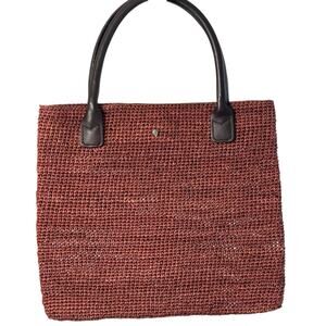Helen Kaminski Rusty Brown Satchel Woven Raffia & Leather handles, OS