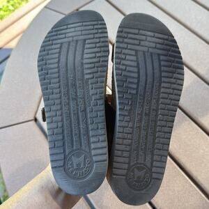 Hand-finished straps with an adjustable buckle top a contoured footbed and flexible sole in this toe-loop sandal that relieves joint pressure.
