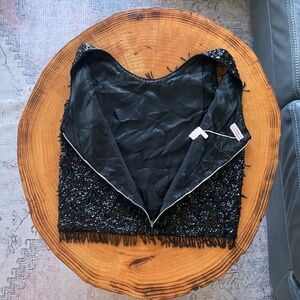 Pre owned Helen Wong Black Wool Sequin Beads Tassel Vintage Sleeveless top