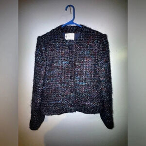 Helen Ziki women’s tweed collarles button up blazer Purple 8 career work vintage