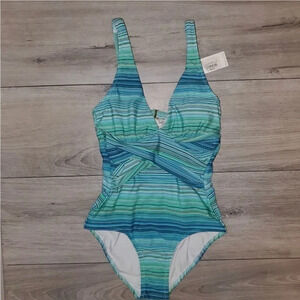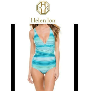 Helen Jon underwire XS One-Piece women's plunging neckline blue jade swimsuit