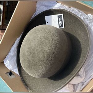 Gorgeous Helen Kaminski wool hat. Never been worn, with tags attached, in Helen Kaminski box. Made in Australia. Slight irregularity on top of hat, as seen in photos.