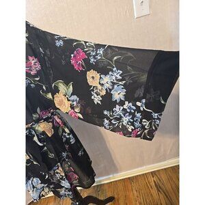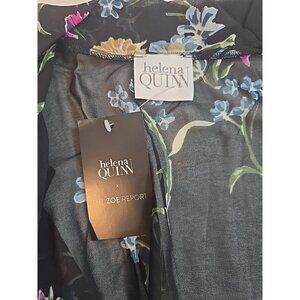Helena Quinn X Zoe Report Georgette black floral kimono pockets tie One size New