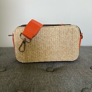 Helena Straw Crossbody Bag With Faux Leather Paneling