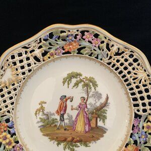 Helena Wolfsohn Reticulated Plate 8.5" Watteau Couple Scene Dresden Germany 4