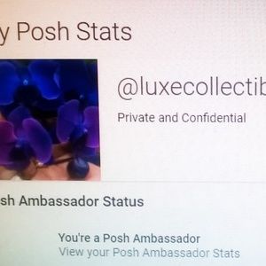**Just a special word of thank you to all my Posh Sisters who have been so encouraging and helpful and supportive in the months since I joined Poshmark. Your guidance and advice and support have been instrumental in my achieving the status of Poshmark Ambassador. I sincerely thank you.💗**