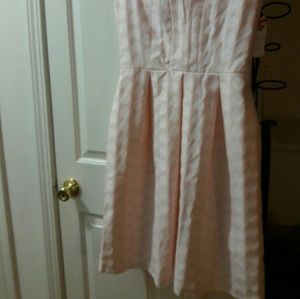 Brand new beautiful Helene Berman London dress size 8. Contrast v neck spot dress. Color is a light pink with white spot