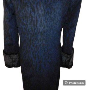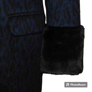 Made with 50% Acrylic/25% Polyester/20% Wool/5% Other Fibers (self), 100% Acetate (lining), 100% Cotton (velvet), and 100% Polyester (faux fur)