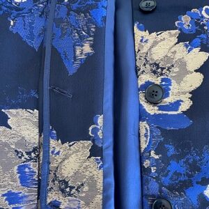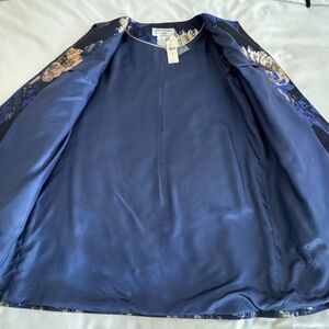 Beautifully tailored, new with tags, Helene Berman jacket. Size 6, but could potentially fit a 4 or an 8. Colors are midnight blue, cobalt blue and gold. Retails for $238