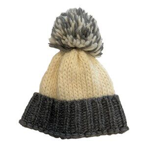 Helene Berman London, cream and gray knitted hat with large pom-pom. “Like new” condition 60% acrylic, 15% alpaca, 15% wool, 10% rayon. Beautifully made and super fashionable.Thanks for looking!