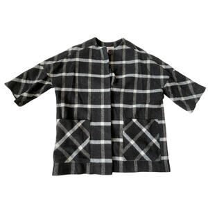 Helene Berman Plaid Wool Coat Oversized Gray S