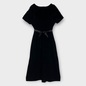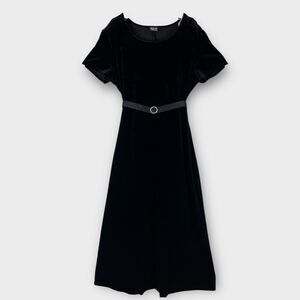 Helene Blake Black Velvet Short Slv Evening Dress Size 12 Satin Belt Vintage 90s