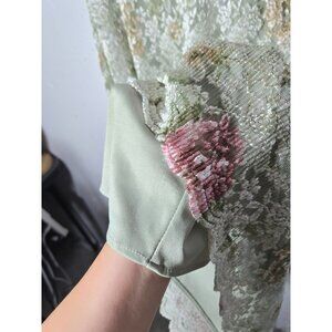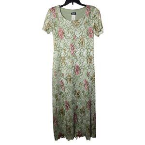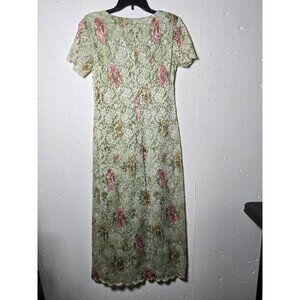 green pink flower floral coquette dainty feminine lace rose long maxi summer spring fall date night going out y2k 90s 2000s retro vtg vintage girly print pattern earthy whimsical whimsy whimsi fairy fairycore garden boho bohemian short sleeve lined easter church wedding guest party formal event gala homecoming hoco prom dance overlay over lay cottage cottagecore romantic