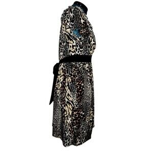 Helene Blake Womens L Leopard Print Short Sleeve Ruffle Neck Tie A Line …