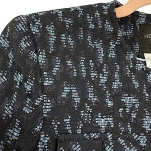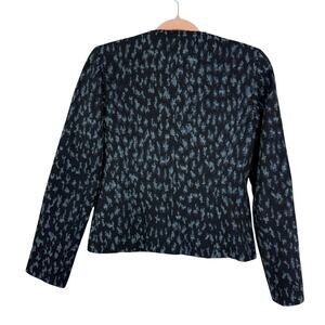Helene London Collarless Blazer Small Blue Metallic Patterned Full Button Front